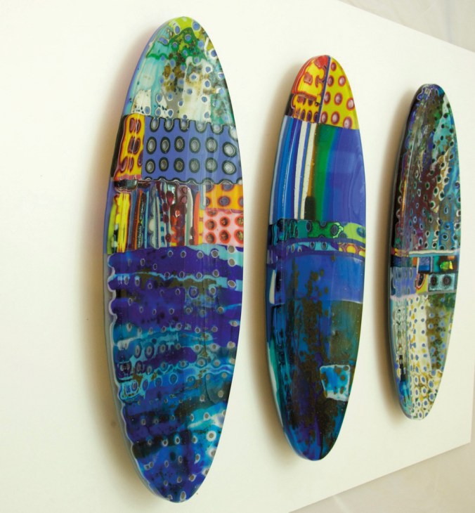 Kim Bramley oriente sa démarche artistique sur l’étude de la couleur à travers la manipulation du verre et de son savoir-faire. Vicky Vanlerberghe joue avec les émaux sur métaux en s’inspirant de l’eau, du feu, de la terre et de la nature. Sandrine Hurel nous guide dans des voyages au coeur de l’argile. Chacune de ses créations est le résultat d’un dialogue entre la matière et le geste. Olivier Villon des Ateliers Boa, quant à lui, propose aux visiteurs d’interagir avec son oeuvre à travers la voix et les mouvements.